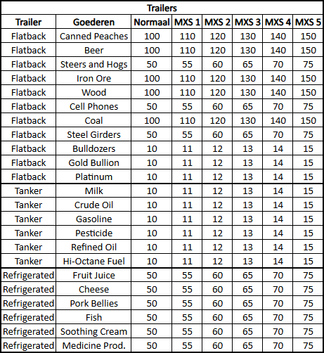 Hoeveel goederen kan je meenemen met bepaalde Trailers?
