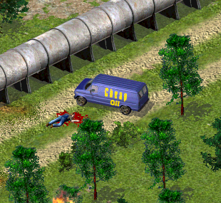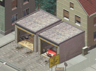 - Achter in de hoek zie je een gegraven gat. Als je daar een politieagent of andere unit op af stuurt dan verschijnt de politieagent of andere unit na een bepaalde tijd bij de garage.