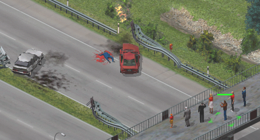 OPGELET! Na 12 minuten loopt de man in het midden van de snelweg de andere kant van de weg op! Hierdoor wordt hij aangereden! Dit gebeurt alleen als je de man niet van de weg hebt gehaald!